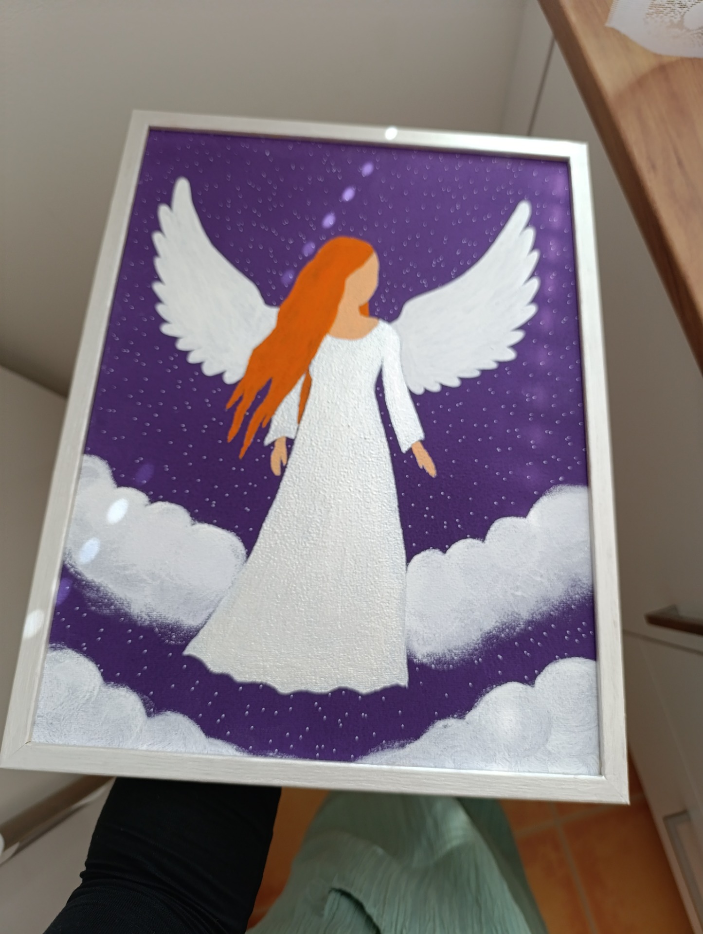 Uchyceno v dřevěném rámu – připraveno k zavěšení.